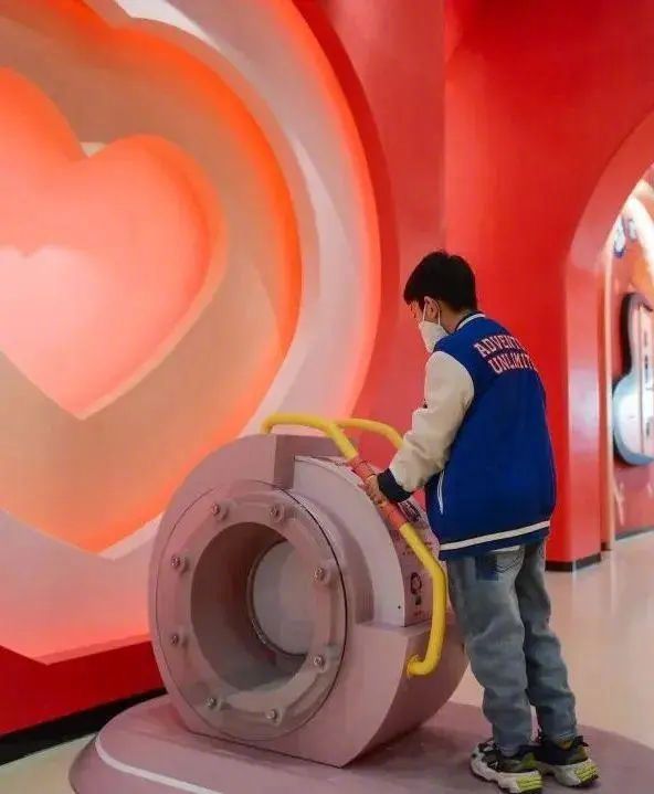 “宇航服拍照”“火箭模型”,简单的互动场景,能让小朋友对宇宙产生浓浓的兴趣!最后来到“我与自己”部分,小朋友可以听自己心跳的声音,观察血管的构造,测自己能跳多高……通过不同的装置了解自己的身体构造。