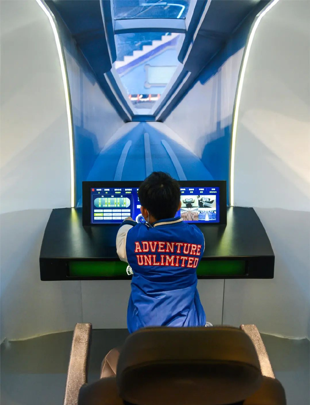 东区四层四楼展厅以科技、航天航空等为主。在这里,能模拟驾驶咱们的国产巨无霸C919大飞机,也可以坐上登月模拟器,发射热气球……不得不说,好客君被妥妥地拿捏了,体验感直接拉满!
